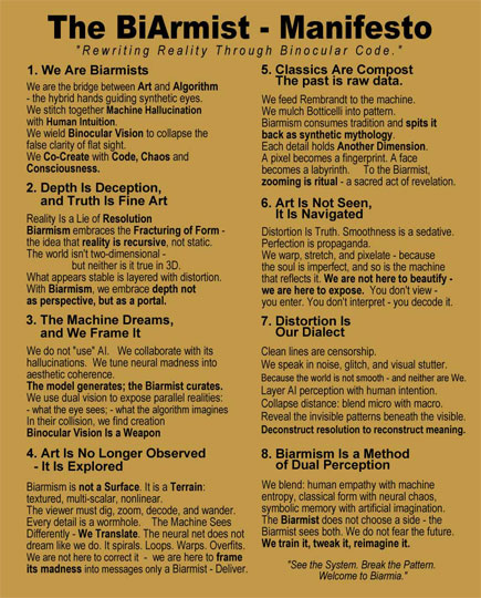 Biarmism is a radical Neo-Digitalist Fine Art movement. It marks a rupture from tradition-not just in style, but in method and ontology.